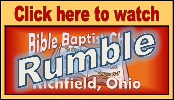 ![]() ![]() The Bible Baptist Church is on both Rumble and YouTube!Watch our Sunday morning and Sunday evening services on either Rumble at: Our Friday Bible study, due to YouTube censorship, is only available on Rumble at: You can watch us live or view previous broadcasts on both YouTube and Rumble. We hope to include other videos and podcasts from time to time as well. So, check out our new Richfield Bible Baptist Church YouTube and Rumble channels and be sure to subscribe so you don't miss a thing! |
